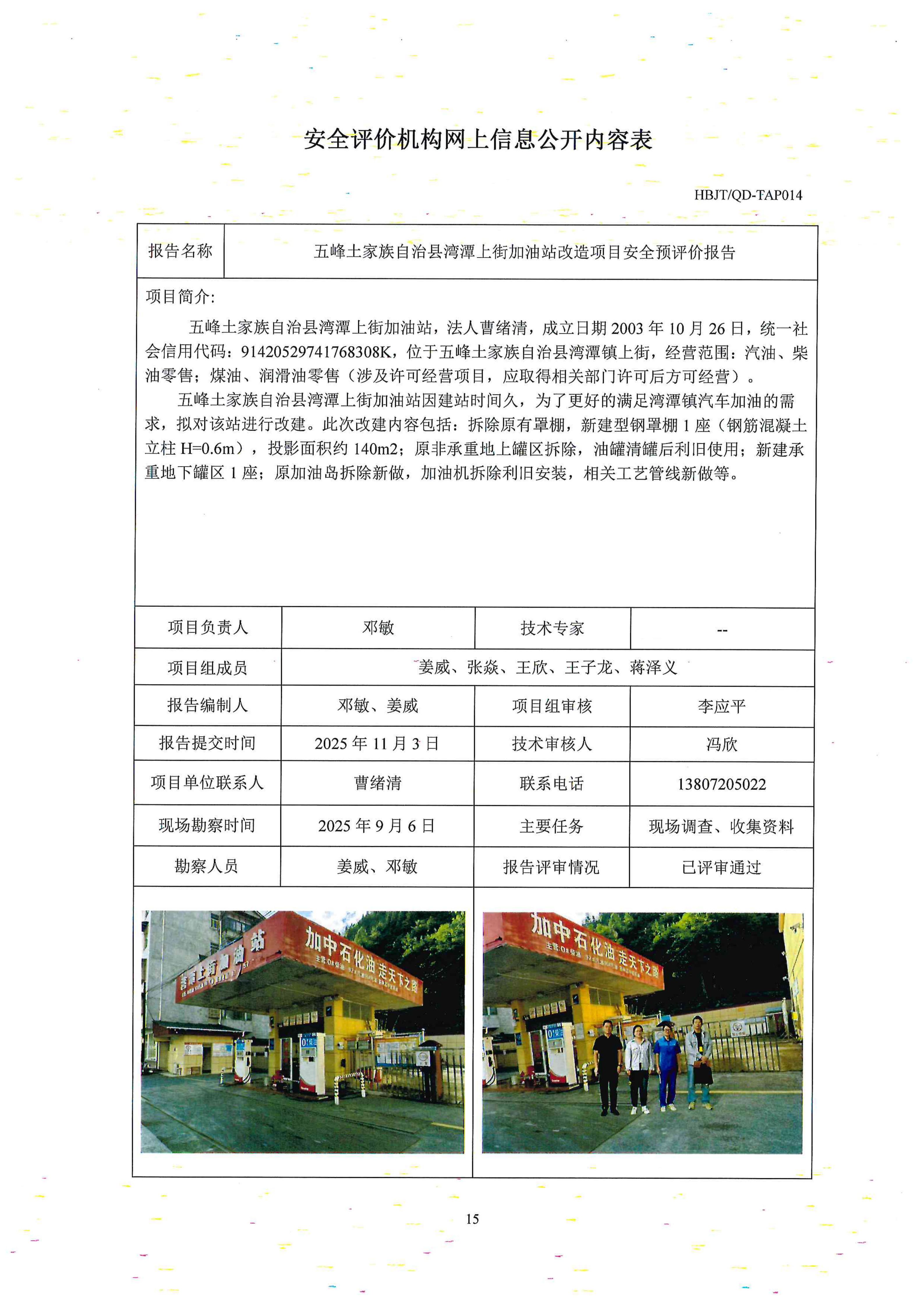 五峰土家族自治縣灣潭上街加油站改造項目安全預(yù)評價