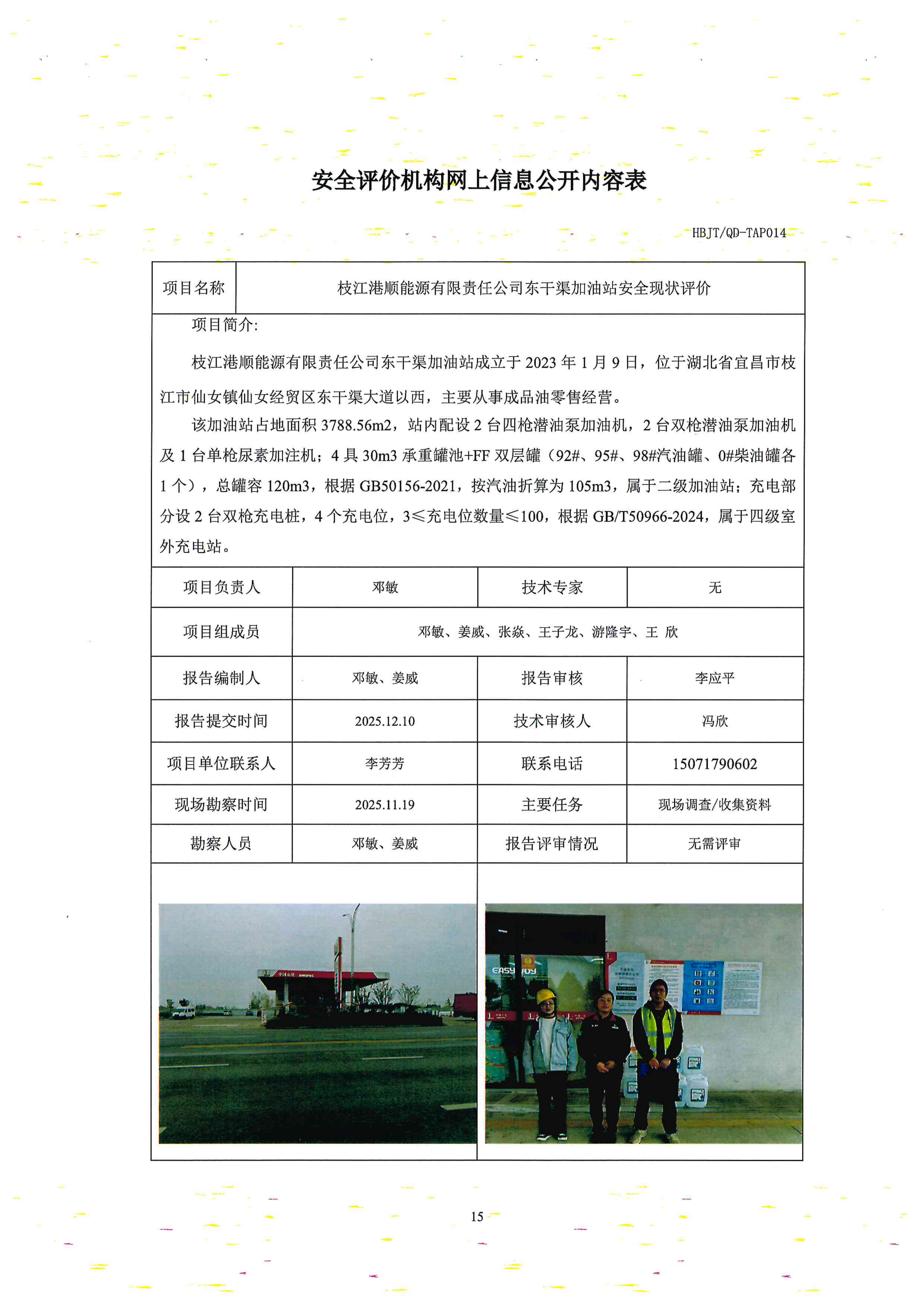 枝江港順能源有限責(zé)任公司東干渠加油站安全現(xiàn)狀評(píng)價(jià)