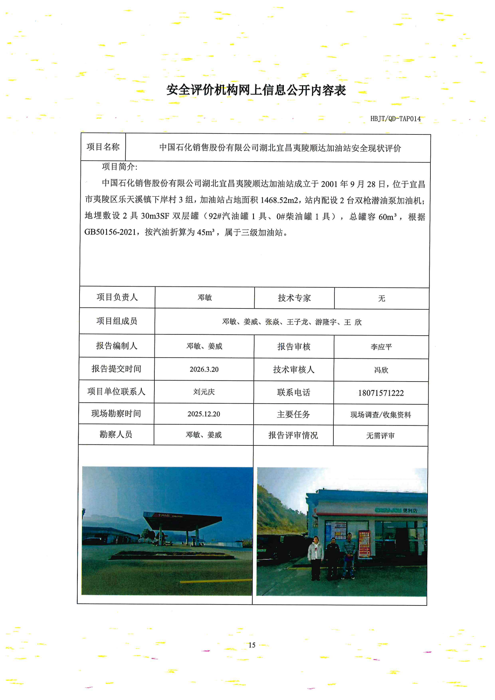 上一篇:?中國石化銷售股份有限公司湖北宜昌夷陵丁家壩加油站安全現(xiàn)狀評價